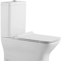 Тип: унитаз-компакт, напольный • Чаша: воронкообразная, прямоугольная (скошенные углы) • Слив: горизонтальный • Подвод: нижний • Материал: санфарфор