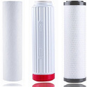 Угольные картриджи, пришлось их заменить на картриджи другого (дешевого) бренда. Потому что из родных картриджей в воду поступает какое-то вещество, которое при кипячении даёт белый осадок! Причём следовал инструкции - спустил большое количество воды перед первым применением. И потом использовал эту воду в течении месяца, но даже за месяц этот осадок в воде никуда не делся. Пришлось заменить на картриджи другого бренда и никакого осадка нет. Также нет осадка при кипячении НЕфильтрованной воды с крана.