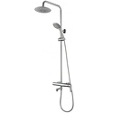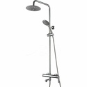 Устройство: душевая система • Смеситель: джойстик • Ручной душ (душевая лейка): размер 115 мм, настройки 3 шт • Верхний душ (тропический): размер 215 мм, настройки 1 шт • Комплектация: ручной душ, верхний душ, смеситель, стойка, шланг, крепление ручного душа