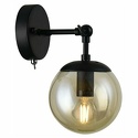 Бра стиля лофт для гостиной, кабинета или спальни имеет размеры 130х240х180 мм. Арматура светильника окрашена в черный цвет. Лампы в комплекте - отсутствуют. В светильнике применяются лампы накаливания или светодиодная LED-лампа. Цвет плафонов - янтарный, с прозрачной поверхностью. Материал плафонов - стекло. Класс электробезопасности - I, степень пылевлагозащиты (IP) - 20. Максимальная мощность лампы (Вт) - 60. Светильник размещается на стене.