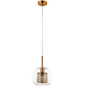 Подвесной светильник стиля модерн для гостиной, кабинета, коридора, прихожей или спальни имеет размеры 200x1810 мм. Арматура светильника окрашена в бронзовый цвет. Лампы в комплекте - отсутствуют. В светильнике применяются лампы накаливания или светодиодная LED-лампа. Цвет плафонов - неокрашенный, с прозрачной поверхностью. Материал плафонов - стекло. Класс электробезопасности - I, степень пылевлагозащиты (IP) - 20. Максимальная мощность лампы (Вт) - 60. Светильник размещается на потолоке.