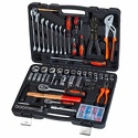 Набор: 99 шт • Ключи: комбинированные, шестигранные • Головки: 6-ти гранные головки, свечные • Ключей-трещоток: 2 шт • Хранение: пластиковый кейс