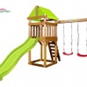 Комплектациядеревянный игровой домик - 1 шт, тентовая крыша – 1 шт, качельная балка с «А» опорой - 1 шт, комбинированная лестница - 1 шт, горка пластиковая волновая babygarden 2.2 м - 1 шт, качели «лодочка» на канатах - 2 шт, песочница - 1 шт, набор крепежа – 1 шт., руководство по сборке и эксплуатации – 1 шт.