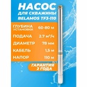 Производитель: Беламос Модель: TF3-110 - мощность 1200 Вт - напор 110 м - погружение до 80 м - для чистой воды - пропускная способность 2.7 куб. м/час Описание
