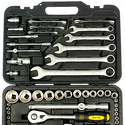 Комплектация- 13 шт.: 1/4" Головки торцевые 6-гранные Super Lock: 4, 4.5, 5, 5.5, 6, 7, 8, 9, 10, 11, 12, 13, 14 мм- 1 шт.: 1/4" Трещотка (ключ трещоточный с быстрым сбросом): 45 зубов- 1 шт.: 1/4" Гибкий удлинитель: 150 мм- 2 шт.: 1/4" Удлинитель: 50, 100 мм- 1 шт.: 1/4" Отвертка с присоединительным квадратом- 1 шт.: 1/4" Кардан шарнирный- 1 шт.: 1/4" Вороток Т-образный: 110 мм- 17 шт.: 1/4" Биты-головки:Hex (шестигранник): 3,4,5,6,Slot: 4, 5.5, 7Ph (крест): 1, 2Pz (позидрайв): 1, 2Torx (звёздочка): T8, T10, T15, T20, T25, T30- 1 шт.: 1/4" Переходник для электроинструмента- 12 шт.: 1/2" Головки торцевые 6-гранные Super Lock: 13, 14, 15, 16, 17, 18, 19, 22, 24, 27, 30, 32 мм- 2 шт.: 1/2" Головки свечные магнитные: 16, 21 мм- 1 шт.: 1/4" Трещотка (ключ трещоточный с быстрым сбросом): 45 зубов- 2 шт.: 1/2" Удлинитель: 125, 250 мм- 1 шт.: 1/2" Кардан шарнирный- 1 шт.: 1/2" Переходник скользящий- 9 шт.: Ключи комбинированные: 8, 10, 11, 12, 13, 14, 17, 19, 22 мм- 15 шт.: 5/16" Биты:Hex (шестигранник): 8, 10, 12, 14Slot (шлиц): 8, 10, 12Ph (крест): 3, 4Pz (позидрайв): 3, 4Torx (звёздочка): T40, T45, T50, T55- 1 шт.: 5/16” Адаптер для бит
