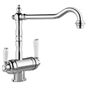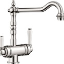 Классический дизайн элементов управления, подключение фильтра Отдельные рычаги управления для фильтрованной и нефильтрованной воды Один совмещенный излив для питьевой и обычной воды с разделением рассекателя