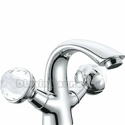 Тип: для умывальника, двухвентильный • Монтаж смесителя: настольный • Струя: высота 86 мм, глубина 116 мм