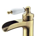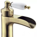 Назначение: для умывальника • Конструкция: однорычажный • Монтаж: горизонтальный • Материал: покрытие - бронза • Монтажные отверстия: 1 отверстие • Форма излива: каскадная • Душевая лейка в комплекте: нет • Донный клапан в комплекте: есть