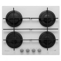 Поверхность: варочная панель • Тип поверхности: газовая • Рабочая поверхность: закаленное стекло • Число конфорок: 4 • Установка: независимая • Газовые конфорки: всего - 4 • Газ-контроль конфорок: есть • Тип управления: механическое • Переключатели: поворотные • Электроподжиг: есть, автоматический • Размеры: 595x510x50 мм • Размер ниши для встраивания: 560x480 мм • Цвет: панель - белый