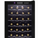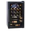 Тип: однокамерный винный шкаф • Расположение: отдельностоящий • Количество компрессоров: 1 • Цвет: чёрный • Размеры (ШxВxГ): 425x725x460 мм • Количество дверей: однодверный • Общий объем: 62 л • Винный шкаф: 22 бут. • Управление: цифровой дисплей, электронное • Освещение в холодильной камере: есть • Перевешиваемые двери: есть • Материал полок: металл • Годовой расход энергии: 237.25 кВтч