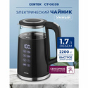 Производитель: Centek Модель: CT-0039 - тип: чайник - объем: 2.5 л - мощность: 2200 вт - материал корпуса: нерж. сталь - цвет: матовый металлик, металлик Описание