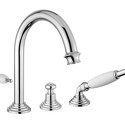 Назначение: ванна+душ • Конструкция: однорычажный • Монтаж: горизонтальный • Материал: покрытие - хром • Монтажные отверстия: 4 отверстия • Форма излива: традиционная • Душевая лейка в комплекте: есть