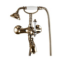 Назначение: ванна+душ • Конструкция: однорычажный • Монтаж: вертикальный • Клапан: керамический • Материал: покрытие - бронза • Подводка: жесткая • Монтажные отверстия: 2 отверстия • Форма излива: традиционная • Душевая лейка в комплекте: есть • Держатель для душевой лейки: настенный держатель • Аэратор: есть
