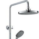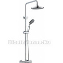 Устройство: душевая система • Смеситель: термостатический • Ручной душ (душевая лейка): размер 100 мм, настройки 1 шт • Верхний душ (тропический): размер 220 мм, настройки 1 шт • Комплектация: ручной душ, верхний душ, смеситель, стойка, шланг, крепление ручного душа