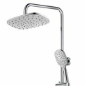 Устройство: душевая система • Смеситель: джойстик • Ручная лейка: настройки 3 шт • Верхний душ: размер 290 мм, настройки 1 шт • Комплектация: ручной душ, смеситель, стойка, шланг, крепление ручного душа, полка