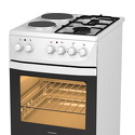 Тип конфорок: комбинированные • Рабочая поверхность: нерж. сталь, эмаль • Тип духовки: электрическая • Размеры (ШxВxГ): 500x850x600 мм • Цвет: белый • Конфигурация электрических конфорок: 1 x 1500 g 1 x 1000 g • Электрические конфорки: всего - 2 • Газовые конфорки: всего - 2 • Объем духовки: 50 л • Очистка духовки: традиционная • Подсветка: есть • Количество стекол дверцы духовки: 2
