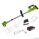 Двигатель: электрический (аккумулятор), 350 Вт • Аккумулятор: 21 В, 1.5 Ач • Покос: ширина 15 см • Вес косилки: 2 кг