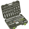 Головки торцевые подробно1/4": 4, 4.5, 5, 5.5, 6, 7, 8, 9, 10, 11, 12, 13, 14 мм; длинные 1/4": 6, 7, 8, 9, 10, 11, 12, 13 мм; Torx 1/4": E4, E5, E6, E7, E8; с битами 1/4": SL4, SL5.5, SL6, PH1, PH2, PZ1, PZ2, H3, H4, H5, H6, T8, T10, T15, T20, T25, T27, T30; вороток т-образный 1/4": 115 мм; трещетка 1/4": 45 зубов; удлинитель 1/4": 50, 100 мм; карданный шарнир 1/4"; 1/2": 10, 11, 12, 13, 14, 15, 16, 17, 18, 19, 20, 21, 22, 24, 27, 30, 32 мм; длинные 1/2": 14, 15, 17, 19, 22 мм; Torx 3/8": E10, E11, E12, E14, E16, E18, E20, E24; свечные 1/2": 16, 21 мм; трещетка 1/2": 45 зубов; удлинитель 1/2": 125, 250 мм; карданный шарнир 1/2";