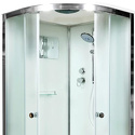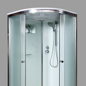 Монтаж душевой кабины осуществляется без использования силикона. Латунный смеситель с керамическими картриджами и резьбовыми соединениями. 100% акриловый поддон с дренажными отводами, высотой 15 см усиленный металлическим каркасом с вставкой из антибактериального полимера. Матовое безопасное закаленное сверхпрочное стекло толщиной 4 мм с антикальциевой обработкой. Душевая штанга с регулировкой лейки по высоте и ручная лейка с силиконовыми форсунками. диаметром 140 мм с функцией переключения режимов.