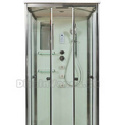 Монтаж душевой кабины осуществляется без использования силикона. , с возможностью сборки изнутри, что позволяет подбирать размер душевой кабины в соответствии с размерами ниши для ее монтажа. Латунный смеситель с керамическими картриджами и резьбовыми соединениями. 100% акриловый поддон с дренажными отводами высотой 15 см усиленный металлическим каркасом с вставкой из антибактериального полимера. Прозрачное безопасное закаленное сверхпрочное стекло толщиной 6 мм с антикальциевой обработкой.