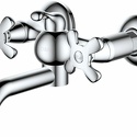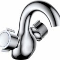 Назначение: универсальный • Конструкция: двухрычажный • Монтаж: вертикальный • Клапан: керамический • Материал: покрытие - хром • Подводка: жесткая • Монтажные отверстия: 2 отверстия • Форма излива: традиционная • Душевая лейка в комплекте: есть • Эксцентрики в комплекте: есть
