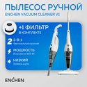 Производитель: Enchen Модель: V1 - Тип: вертикальный с портативным, сухая уборка - Пылесборник: система циклон, 1.2 л - Хар-ки: мощность 650 Вт, тяга 14000 Па, шум 75 дБ Описание