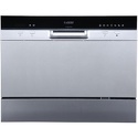 Расположение: свободностоящая • Возможность встраивания: с открытой панелью • Класс мойки: A • Размеры: 550x438x500 мм • Цвет: серебристый • Вместимость (комплектов посуды): 6 • Управление: электронное • Программы мойки: 6 программ (быстрая мойка, стандартная мойка, мойка сильнозагрязненной посуды, экономичный режим, деликатная мойка) • Количество температурных режимов: 6