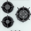 газовая на 3 конфорки • закаленное стекло • мощность: 6550 Вт • автоматический электроподжиг • газ-контроль • решетки: чугун • независимая установка • размеры (ШхГ): 45x51 см
