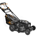 Двигатель: бензиновый, тип газонокосилки: самоходная, Мощность ДВС: 4.90 л.с., количество тактов двигателя: четырехтактный, ширина скашивания: 53 см, мульчирование, количество колес: четырехколесная