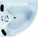Материал: акрил • Расположение: отдельно стоящая, угловая конструкция • Форма: четверть круга • Количество мест: двухместная • Гидромассаж: есть, 5 форсунок • Подсветка: есть • Комфорт: подголовник • Смеситель в комплекте: есть • Размеры (ДxШxВ): 150x150x66 см
