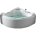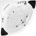 Материал: акрил • Расположение: отдельно стоящая, угловая конструкция • Форма: четверть круга • Количество мест: двухместная • Гидромассаж: есть, 7 форсунок • Аэромассаж: есть, 8 форсунок • Озонирование: есть • Подсветка: есть • Комфорт: подголовник • Смеситель в комплекте: есть • Размеры (ДxШxВ): 152x152x60 см