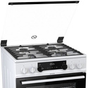Тип конфорок: газовые • Рабочая поверхность: эмаль • Тип духовки: электрическая • Размеры (ШxВxГ): 600x850x600 мм • Цвет: белый • Газовые конфорки: всего - 4 • Газ-контроль конфорок: есть • Защитное отключение: есть • Объем духовки: 65 л • Конвекция: есть • Гриль: есть, электрический • Очистка духовки: очистка паром, традиционная • Подсветка: есть • Количество стекол дверцы духовки: 2