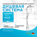 Устройство: душевая система • Ручной душ (душевая лейка): размер 100 мм, настройки 2 шт • Верхний душ (тропический): размер 240 мм, настройки 1 шт • Комплектация: ручной душ, верхний душ, стойка, шланг, крепление ручного душа