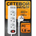 Розеток: евро 3 шт • Порты: USB A 3 шт, 2.4 А • Мощность подключения: 4000 Вт • Длина кабеля: 1.8 м
