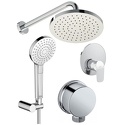 Комплектацияручной душ (душевая лейка), верхний душ (тропический), смеситель, душевой шланг, крепление ручного душа, настенный кронштейн