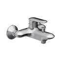Назначение: ванна+душ • Конструкция: однорычажный • Монтаж: вертикальный • Материал: латунь, покрытие - хром • Подводка: жесткая • Монтажные отверстия: 2 отверстия • Форма излива: традиционная • Эксцентрики в комплекте: есть