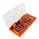 КомплектацияSlotted: 1.0, 1.5, 2.0, 2.5, 3.0, 3.5, 4.0Phillips: J000, J00, J0, J1, 1.0, 1.5, 2.0, 2.5, 3.5Torx: T3, T4, T5, T6, T7, T8, T9, T10, T15, T20Hex: H0.9, H1.3, H1.5, H2.0, H2.5, H3.0, H3.5, H4.0, H4.5, H5.0, H6.0Tri-wing: Y2.0, Y3.0U-shaped: U2.6Triangle: 2.3Square: SQ0, SQ1, SQ2Pentalobe (star): 0.8, 1.2, 1.5, 2.0Socket: M2.5, M3.0, M3.5, M4.0, M4.5, M5.0- Отвертка под биты;- Гибкий удлинитель.