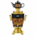 Тип: самовар • Объем: 4 л • Мощность: 2200 Вт • Материал корпуса: нерж. сталь • Цвет: белый, золотистый • Нагревательный элемент: скрытый, покрытие - нержавеющая сталь • Индикация включения: есть • Автоотключение при закипании: есть • Заварочный чайник в комплекте: есть • Вес: 2.914 кг