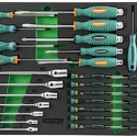 Комплектация- Ключи гаечные карданные, 7 шт.: 6х7, 8х9, 10х11, 12х13, 14х15, 16х17, 18х19 мм.;- Отвертки стержневые ударные шлицевые, 3 шт.: SL6.5х125 мм., SL8х150 мм., SL9.5х175 мм.;- Отвертки стержневые ударные крестовые, 2 шт.: PH2х100 мм., PH3х150 мм.;- Отвертки стержневые шлицевые "Anti-Slip Grip", 4 шт.: SL6.5х38 мм., SL4х80 мм., SL5.5х125 мм., SL6.5х150 мм.;- Отвертки стержневые крестовые "Anti-Slip Grip", 4 шт.: РН2х38 мм., РН1х80 мм., РН2х100 мм., РН3х150 мм.;- Отвертки для точной механики, 14 шт.: SL2, SL2.4, SL3, РН00, РН0, РН1, Т5, Т6, Т7, Т8, Т9, Т10, Т15, Т20.;- Ложемент EVA 560х400 мм.