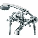 Назначение: ванна+душ • Конструкция: с раздельными клапанами • Монтаж: вертикальный • Клапан: керамический • Материал: покрытие - хром • Подводка: жесткая • Монтажные отверстия: 2 отверстия • Форма излива: традиционная • Душевая лейка в комплекте: есть • Держатель для душевой лейки: на смесителе • Донный клапан в комплекте: есть