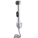 Гигиенический душ Kaiser SH-350. Характеристики: - Цвет: хром. - Материал: пластик. - Материал шланга: ПВХ. - Монтаж: настенный. - Длина шланга: выполнен в виде пружины и растягивается до 2-х метров. В комплекте поставки: - Гигиеническая лейка. - Шланг. - Держатель лейки.