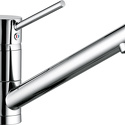Назначение: кухонный • Конструкция: однорычажный • Монтаж: горизонтальный • Материал: покрытие - хром • Подводка: гибкая • Монтажные отверстия: 1 отверстие • Форма излива: традиционная • Душевая лейка в комплекте: нет • Аэратор: есть • Донный клапан в комплекте: есть