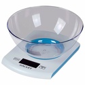 Электронные, предел взвешивания 5 кг, тарокомпенсация, материал платформы / чаши: пластик, индикатор заряда батареи, автоматическое выключение