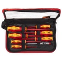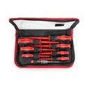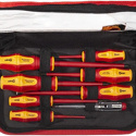 Комплектация- диэлектрические бокорезы 160 мм- диэлектрические пассатижи 180 мм- диэлектрические длинногубцы 200 мм- сменная диэлектр. отвертка: шлиц 2.5 х100- сменная диэлектр. отвертка: шлиц 4.0 х100- сменная диэлектр. отвертка: шлиц 5.5х100- сменная диэлектр. отвертка: PH1 х100- сменная диэлектр. отвертка: PH2х100- тестер напряжения 110–250 В- диэлектр. ключ для электрошкафов: 6x47- диэлектр. ключ для электрошкафов: 8x47- диэлектр. ключ для электрошкафов: 9x47- диэлектр. ключ для электрошкафов: 5.3x47- диэлектр. рукоятка для сменных отверток- диэлектр. вращающаяся насадка на отвертки