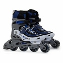 Тип: для фитнеса • Назначение: детские • Ботинок: мягкий • Фиксация: верхняя бакля, обычная шнуровка, пяточный ремень • Рама: пластик • Диаметр колес: 64 мм • Число колес: 4 • Жесткость колес: 82 А • Материал колес: ПВХ • Раздвижная конструкция: есть • Доступные размеры: 31 - 42 • Тормоз: есть • Цвет: белый, синий