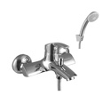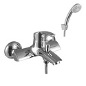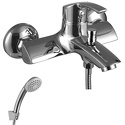 Назначение: ванна+душ • Конструкция: однорычажный • Монтаж: вертикальный • Клапан: керамический • Материал: покрытие - хром • Подводка: жесткая • Монтажные отверстия: 2 отверстия • Форма излива: традиционная • Душевая лейка в комплекте: есть • Держатель для душевой лейки: настенный держатель • Аэратор: есть • Эксцентрики в комплекте: есть • Донный клапан в комплекте: есть