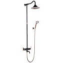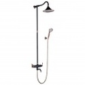 Устройство: душевая система • Смеситель: двухвентильный • Ручная лейка: размер 95 мм, настройки 3 шт • Верхний душ: размер 240 мм, настройки 1 шт • Комплектация: лейка, смеситель, стойка, шланг, крепление лейки • Покрытие: под золото