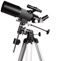 Комплектацияоптическая труба телескопа, окуляр K6 мм, окуляр K25 мм, диагональная призма 45°, оптический искатель 5х24, экваториальная монтировка EQ1, ручки тонких движений, штанга противовеса, противовес, алюминиевая тренога с полочкой для аксессуаров, инструкция по эксплуатации и гарантийный талон
