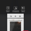Тип: электрическая • Установка: независимая • Объем: 55 л • Цвет: белый • Дверца: откидная • Максимальная температура: 250 °С • Конвекция: есть • Гриль: есть, электрический • Очистка духовки: традиционная • Подсветка: есть • Количество стекол дверцы духовки: 2 • Мультифункциональная духовка: есть • Количество режимов работы духовки: 7 • Направляющие противней: стандартные • Переключатели: поворотные