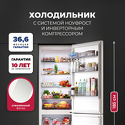 отдельностоящий • полный No Frost • электронное управление • класс A+ • полезный объём: 409 л (267 + 142 л) • инверторный компрессор • зона свежести • перенавешиваемые двери • лоток для яиц • отделка: стекло • 59.5x68x185 см • белый